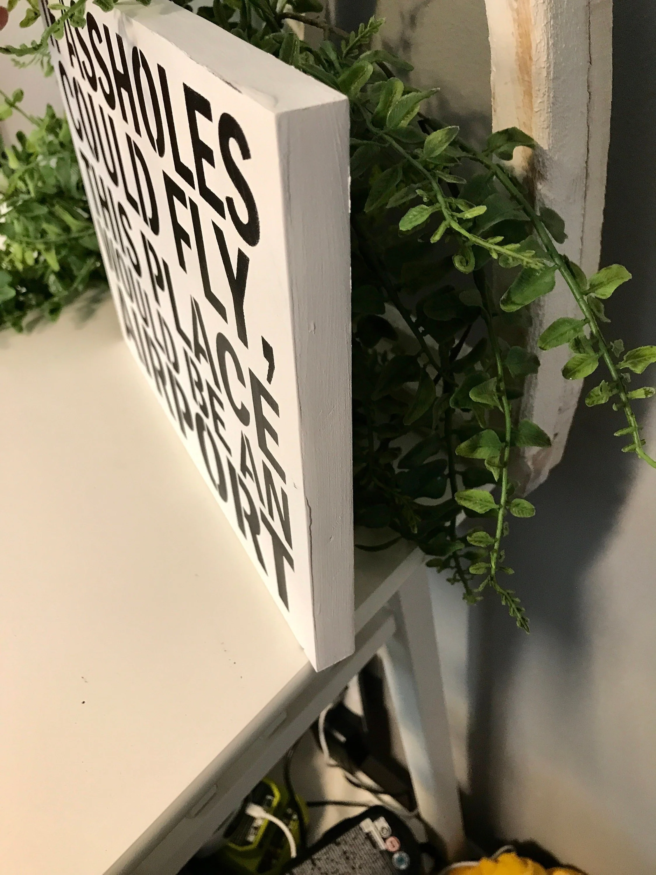 Shop Categories: All Christmas Wood Signs & Products Personalized Gifts Book Lovers Interchangeable Signs Other Home Decor Funny Signs Door Hangers Interchangeable Sign Decor Holidays & Seasons Inspirational Signs All | Christmas | Wood Signs & Products | Personalized Gifts | Book Lovers | Interchangeable Signs | Other Home Decor | Funny Signs | Door Hangers | Interchangeable Sign Decor | Holidays & Seasons | Inspirational Signs | Well Shit Snarky Wood Sign for home or office $8.99 4” Round Interchangeable Sign Frame – Holds 3” Seasonal Inserts (Sold Separately) $15.00 Interchangeable Gnome Sign – 10” Tall Wooden Gnome with 3” Insert Space (Inserts Sold Separately) $20.00 Interchangeable Home Sweet Home Hanging Sign – 13.5” Tall Wooden with 3” Insert Space (Inserts Sold Separately) $25.00 Mini Book Ornament for Christmas or Display from $20.00 Just Say Boo Halloween Ghost Door Hanger – 10.5” Round Wall Sign $29.00 Where Two Or Three Are Gathered Inspirational Wood Sign $24.99 Hand-Painted Wood Sign: Patriotic Home of the Brave Decor $15.00 Halloween Witch Sign – 10.5” Round Hanging Wood Door Sign with Witch Boots, Bats & Bow – Rustic Farmhouse Halloween Décor $29.00 Funny Halloween Ghost Sign – “Quit Ringing My Doorbell You Little Sheets” 11x12 Wall Décor $24.99 Hilarious Hand-Painted Wood Sign: If Assholes Could Fly, This Place Would Be an Airport $15.00 Farmhouse Canvas Decorative Pillows: Rustic Home Sayings $20.00 Book Coffee Lovers Decorative Pillow from $30.00 Spring Tulip Decorative Pillow $30.00 Book Coffee Lovers Decorative Pillow from $30.00 Irish Blessing Wood Sign $34.99 Painted Wood St Patrick's Day Irish themed sign $21.99 Welcome to Our Home Sign- Pillow w/zip code and city $25.00 Office Coffee Station Snarky Sign $19.99 Patriotic Wood Sign "God Bless America" from $35.00 Santa’s Lost Button, Santa Claus Magic Button with Poem Card, Christmas Eve Tradition, Keepsake for Kids, Holiday Magic Gift $7.00 Lawn Dice Game - Yardzee $65.00 Camping Bucket with Multi-Colors Lights $35.00 Whiskey Shitshow Rustic Wood Bar and Man Cave Sign $9.99 Whiskey Rustic Wood Bar and Man Cave Sign $9.99 North Pole Freight Service framed sign for Christmas $39.99 Believe in the Magic of Christmas Vintage Santa sign $35.99 Be Kind Rustic Wood Sign for home or office $19.99 Wood Monogrammed Serving Tray $55.00 Customizable Car Coasters Neoprene Car Decor Swag $7.00 Welcome to Our Classroom Interchangeable Sign – 7.5" with Easel $20.00 Beer and Bullshit Area Wood sign $17.99 Toilet Tank box// Decorative wood display box // customize $25.00 Gnome Yarn - Macramé Christmas Tree Ornament $12.00 Merry Cluckin' Christmas - Chicken Christmas Ornament $12.00 Whiskey Weather Wood Bar and Man Cave Sign $9.99 Hilarious Hand-Painted Wood Sign: “Shit & Split” Bathroom Sign $19.99 Malarkey Wood Sign $12.99 Doorbell Broken snarky wood sign $12.99 Lake / Beach / River Happy Place Wood Sign $22.00 Farm Fresh Pumpkin Patch wood sign $25.00 Apple Orchard Wood Sign $25.00 Hand Painted Boo Crew Cute Halloween Ghost Shelf Sitter w/ Detachable Base $20.00 Christmas Countdown Santa Calendar with Interchangeable Numbers $35.00 Hand Painted Monthly Sign Inserts: 3D Layered Wood Discs for Interchangeable Sign $38.00